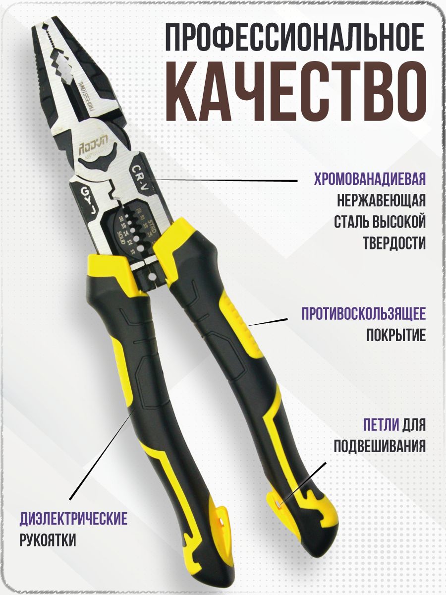 Многофункциональные пассатижи из хромованадиевой (CR-V) нержавеющей стали высокой прочности - это инструмент профессионального качества, который станет вашим верным спутником в мире ремонта, строительства и просто домашнего хозяйства.